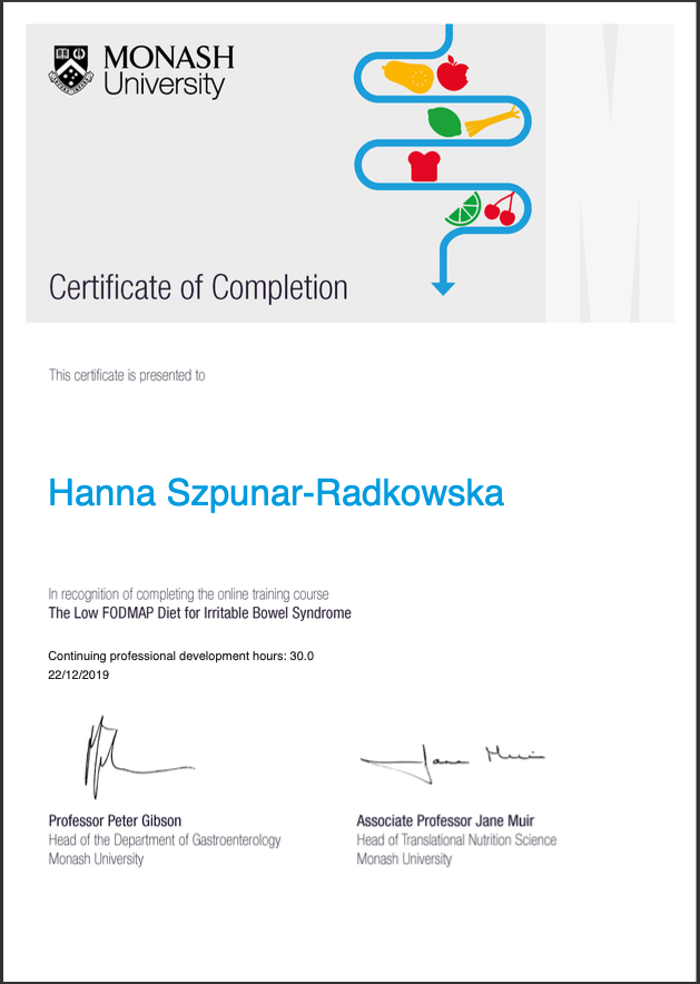 - na Uniwersytecie Monash w Australii z zakresu diety lowFODMAP