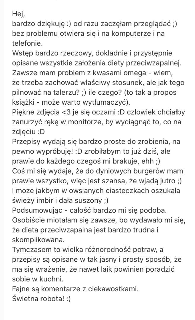 Stworzyłam go z myślą o kobietach cierpiących na choroby, w których ważna jest redukcja stanu zapalnego, w tym endometriozę, ale posłuży on każdemu kto chce zdrowo się odżywiać. Skorzystać z niego mogą również osoby cierpiące na choroby autoimmunologiczne, w tym Hashimoto.